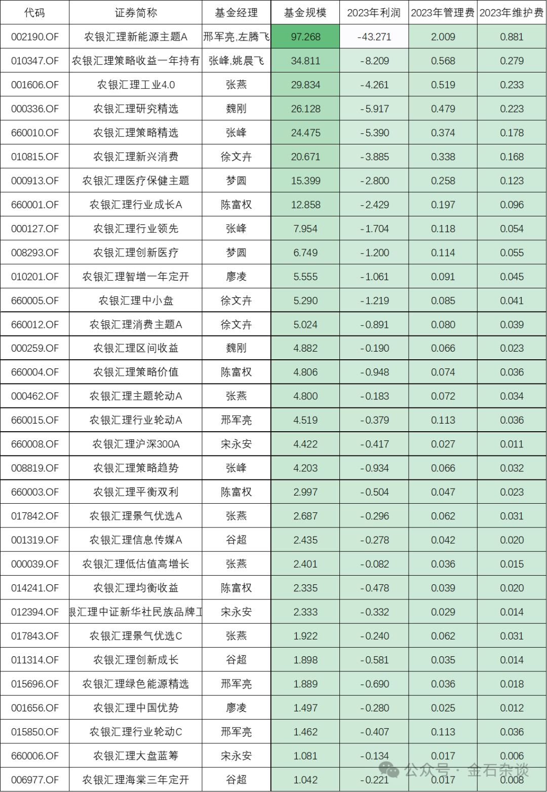 金石杂谈统计发现,在wind统计的354亿权益基金中,农银汇理权益基金去年亏损了94.28亿,扣除渠道赚了4.79亿管理费。
