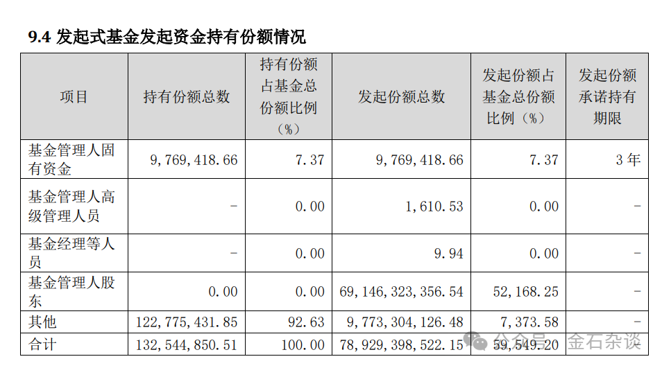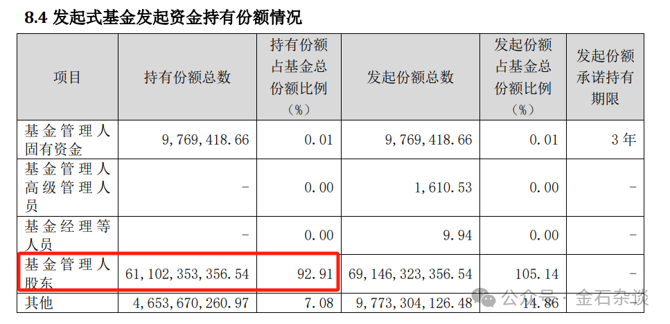 金石杂谈查询发现,在2021年中期,农银汇理金穗三个月尚未被资金赎回的时候,该基金产品的持仓结构显示,基金管理人固有资金持仓977万份,基金管理人股东持有611亿份,持仓占比92.91%,其他投资人持有46.54亿份。